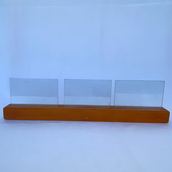 • IMAGINARIUM - Porta retrato de parede com base em madeira, para 3 fotos 10X15cm, med. base 52cm. Um vidro com bicado