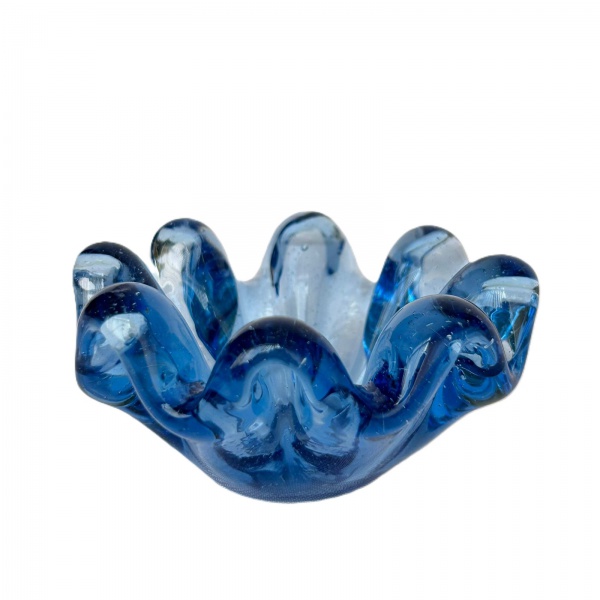 • Pequeno cinzeiro em vidro tipo murano com borda ondulada, med. 9cm de diâmetro.