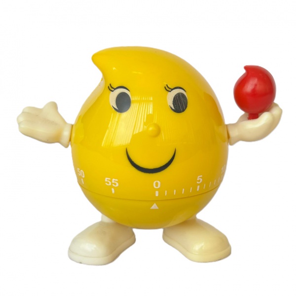 • Timer Regressivo para cozinha em formato de gota amarela em plástico resistente, med. 9cm de altura