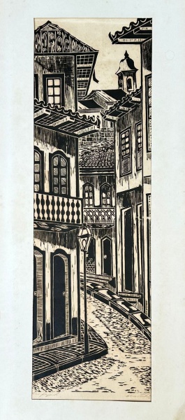 • Assinatura não identificada - Ouro Preto - Xilogravura, assinada e data 1973, med. 25X65,5cm. Sem moldura